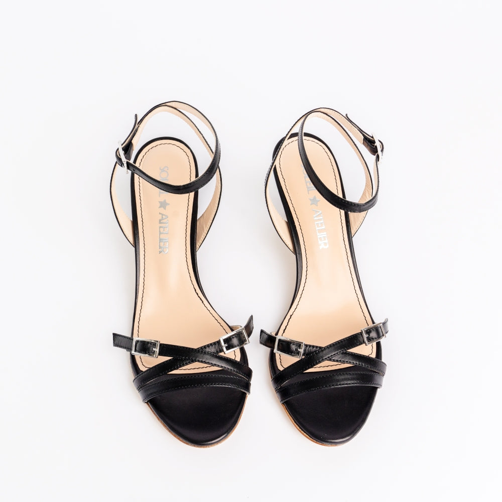 Elegant and eye catching leather.SMOOTH ankle strap. Sleek black wrap ankle strap, buckle toe straps. Crafted in Italy from leather, features slender straps and a modern toe. Wear to instantly elevate day or night dressing.